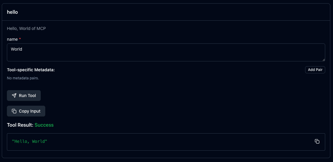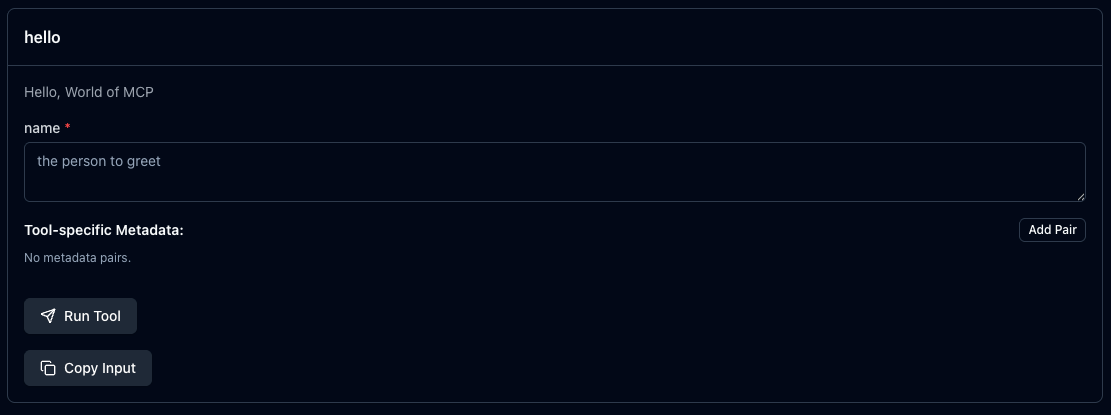 and enter some test data! If you get back the response shown in step 1, congratulations you’ve built an MCP server! Head to step 3 to make it do something a little more interesting and useful.